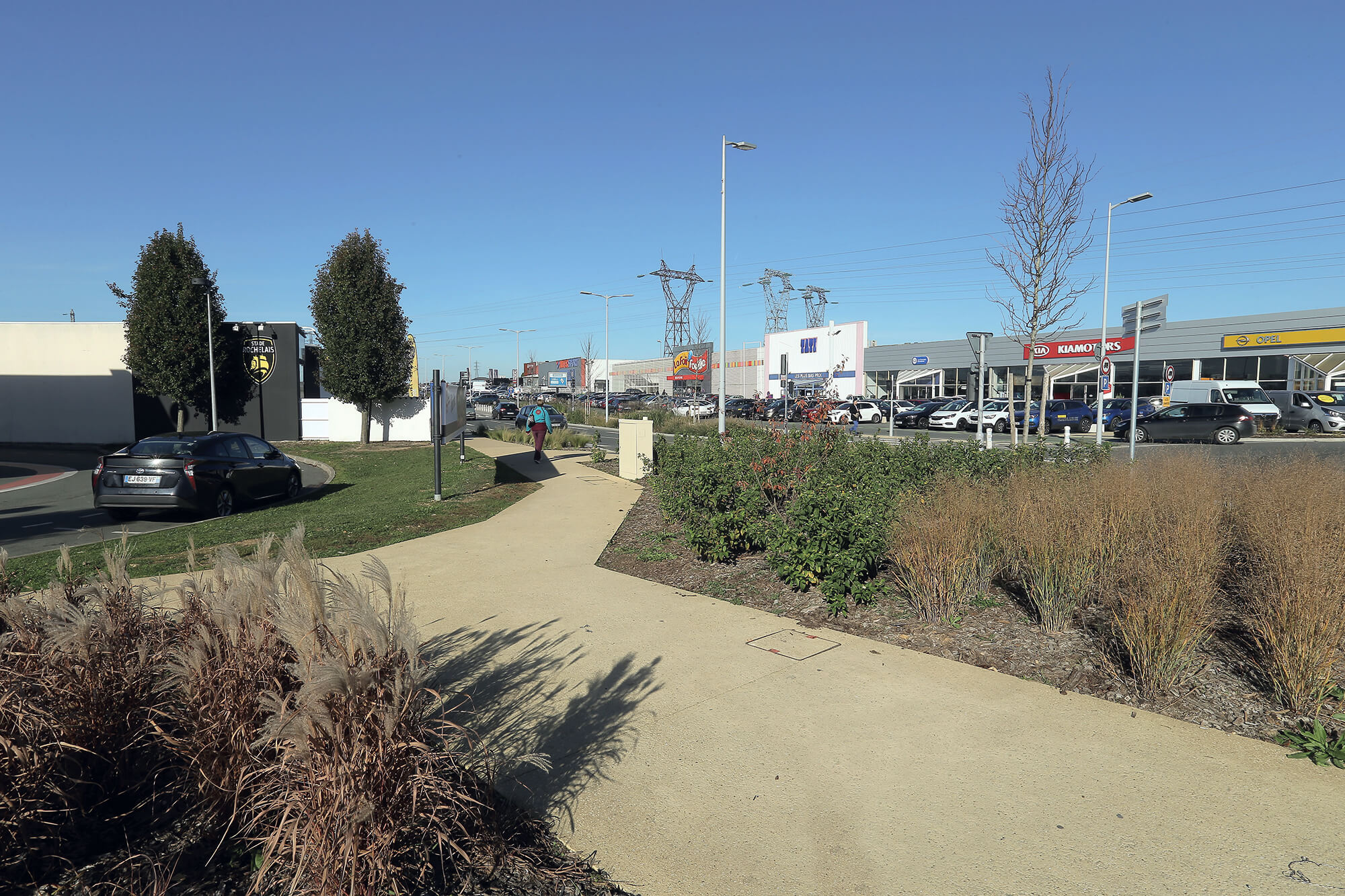 La réhabilitation de ce parc commercial (80 ha, 250 commerces, 2 200 salariés) avait pour objectif de fluidifier la circulation et d’améliorer la desserte en transport public, en vélo et à pied. La vitesse y a été limitée à 30km/h. L’opération a consisté à aménager de nouvelles voies cyclables, à intégrer une ligne de bus (Illico 4) et à créer des cheminements piétons sécurisés. Le parc a aussi bénéficié d’un paysagement global.